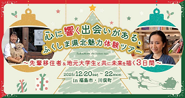 スライドを再生 スライドを停止 スライドを再生 スライドを停止 News 現在、更新情報はございません。 更新情報一覧ページへ Event 相談会 【11月分残席わずか!】東京都内でじっくり対面相談ができます! 相談会 【11/16@福島市】~県内最大級の就農相談会~ふくしま農業人フェア 交流会 <残席わずか!>【11/30@福島市】-移住者交流会-「リンゴの農作業体験&焼き林檎交流会」 セミナー 【12/20@東京】-「工房おりをり」と真綿パフづくり!-福島県での「暮らし」や「ものづくり」を知る、夕暮れワークショップ-vol.2- その他 【12/14@二本松市】<婚活イベントin空の庭>恋する森のメロディ婚 ツアー 【12/20-22@福島市・川俣町】ふくしま県北魅力体験ツアー イベント情報一覧を見る Useful information 二地域居住 東京⇔福島を往復して二地域居住! ライフスタイル 福島市のワーケーションスポットを紹介 子育て 小児科医療の充実に力を入れています! ライフスタイル 街なかで使えるシェアサイクルがあります ライフスタイル プロパンガスと都市ガス 契約するガスにも種類があります 文化 福島の桃って、こんなに種類があるんです! もっと見る 移住に関する情報の一覧を見る Interview 近くに子どもの遊び場が充実!#Iターン #子育て #公務員 常識が覆るくらいおいしい農作物に感動! #Iターン #就農 #ベリーボーイズ やっぱり人。気の合う仲間に出会える場所。#Uターン #就農 #元SE 助けてくれる人が周りにいっぱい! #地域おこし協力隊 #カフェ起業 #アウトドア 実は何でもある!面白い場所! #起業 #地域コミュニティ #マルシェ 住んでみたからこそわかった福島のすごさを発信したい! #Iターン #漫画家 #フリーランス 転機はふるさとで。可能性を広げられるまち #靴職人 #古民家 #農ある暮らし 移住して大正解!と言える子育て環境 #子育て #リモートワーク #Jターン 転職なしで移住実現!ノルカや湯めぐりパスをフル活用! #車なし生活 #温泉 #リモートワーク 水、野菜、果物、風景・・・体がよろこぶ素材がたくさん! #のんびり #Iターン #保育士 移住したことに一番驚いているのは、私自身なんです #Iターン #趣味移住 #転職 移住前は、周りに受け入れてもらえるかどうかが一番心配でした #就農 #Iターン お金より自由な時間がある方が僕は嬉しいです #シェアハウス #山奥ニート #ひきこもりハウス ほど良い中間的な田舎ぐらし #地域おこし協力隊 #就職 #Iターン 自分らしい"つながり"をつくれる街 #クリエイティブ #地域づくり #子育て くだもの、お酒 美味しいよ! #Iターン #子育て #就職 空も山も お気に入り #食 #ていねいな暮らし #転職 豊かな自然とあたたかい人 コンパクトさ二重丸 #地域づくり #起業 #Iターン 大人も子供もワクワクできる子育て環境 #Iターン #子育て #フリーランス 福島市を知ってもらうきっかけ作りを! #起業 #起業支援 #Iターン 福島市で果物を作って夢実現! #就農 #Iターン Fukushima -land of plenty- #Iターン #就職 スライドを再生 スライドを停止 移住者VOICE一覧を見る SNS Related information