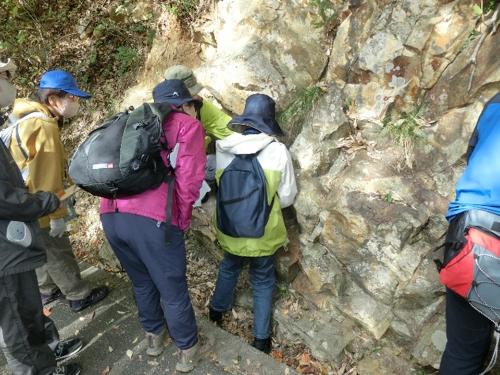 岩谷観音磨崖仏付近では、魚の背骨などと思われる化石を見つけることができました。