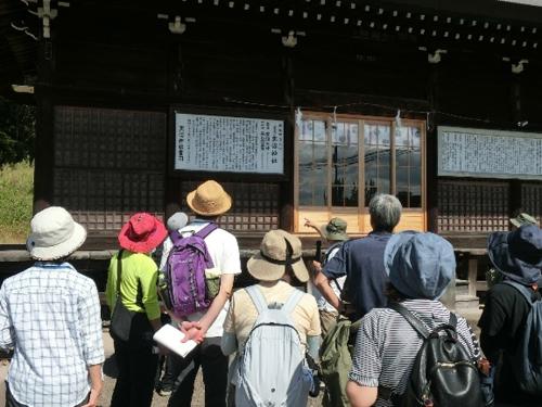 駒山公園をスタート地点として、旧祓川橋、護國神社、黒沼神社、薬王寺、御神坂、弘安の逆さ板碑などの史跡を巡りました。