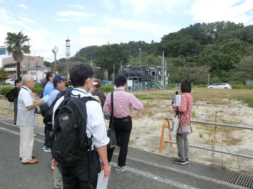 午前中には、旧国鉄川俣線(*2)の旧岩代飯野駅を見学しました。戦後の鉄道全盛期には羽二重輸送などの重要な役割を果たした鉄道で、同地区の現代史に欠かせないものでした。