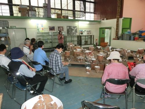 実際に漆やアスファルトが残ったままの土器をもとに、縄文時代の生活文化や、日本海側の地域との交流について、説明していただきました。