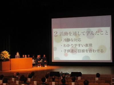 岳陽中学校生徒による「少年の主張」および飯野中学校生徒代表による「職場体験活動」の発表が行われました。大勢の聴衆を前に中学生が日頃の思いや経験について堂々と発表しました。