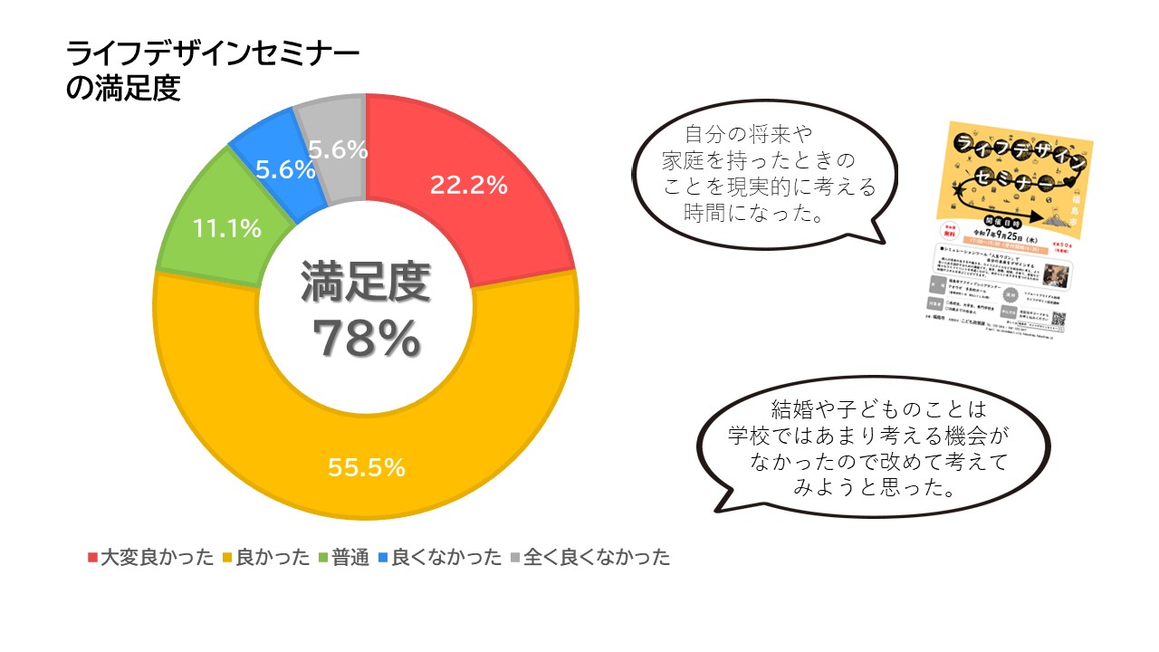 参加者からは、「自分の将来について現実的に考えたり可視化できたことが良かった」「自分の幸せについて考え、納得のいく人生を歩めるように見つめ直したい」などの感想がありました。