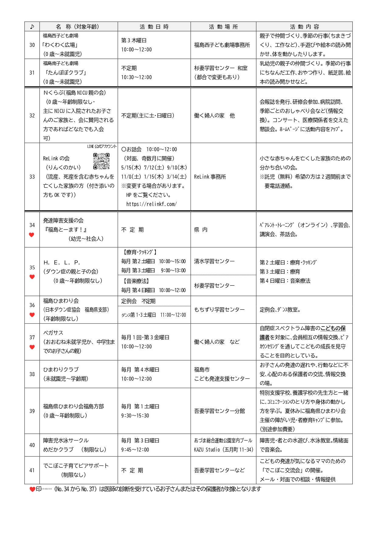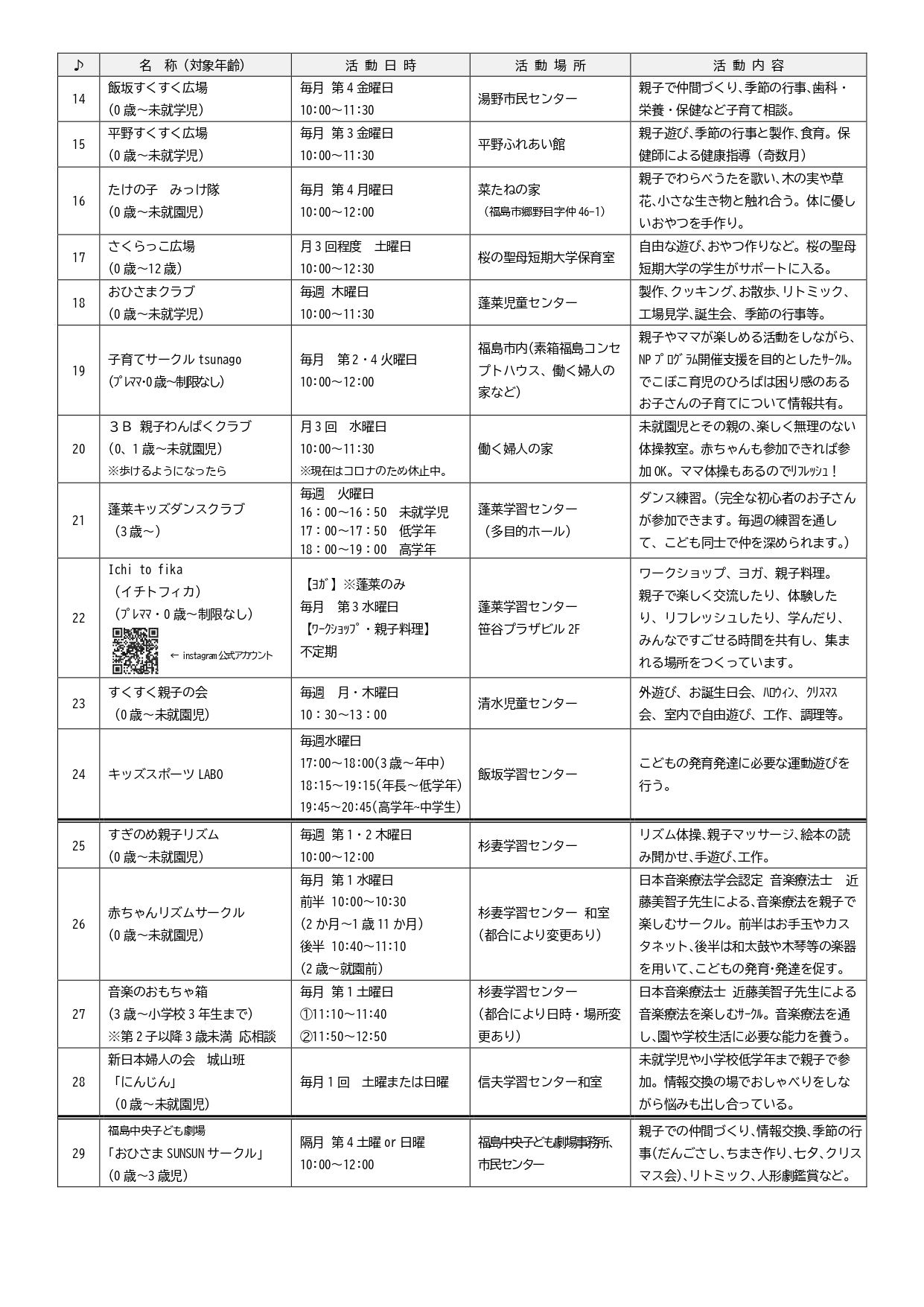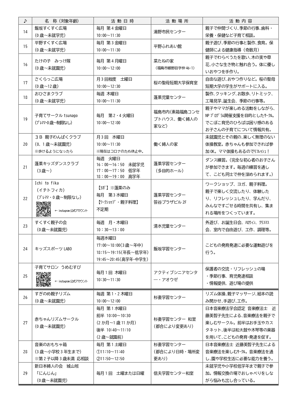 子育てサークル一覧