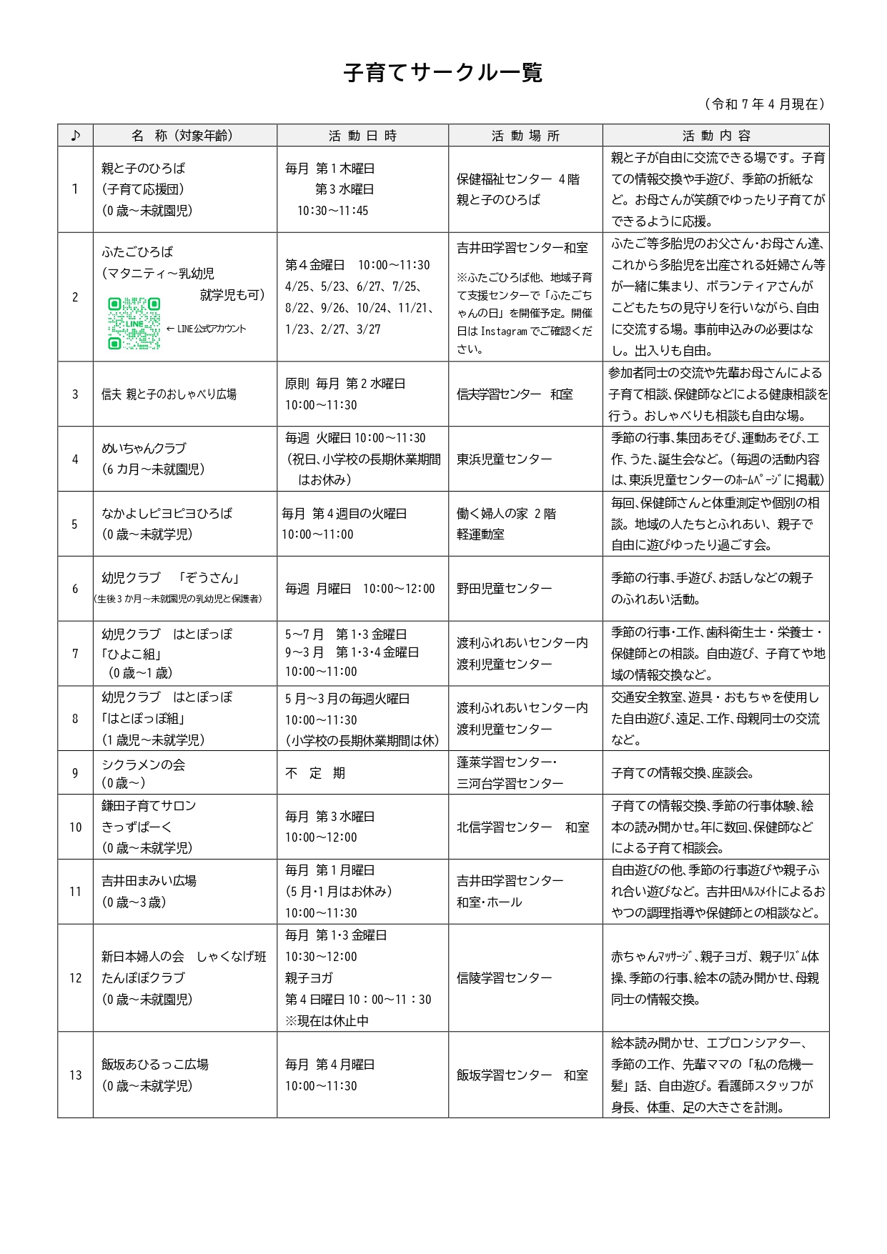 子育てサークル一覧(1~13) (PDFファイル: 290.4KB)
