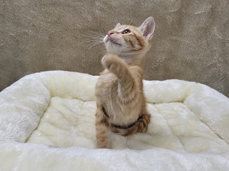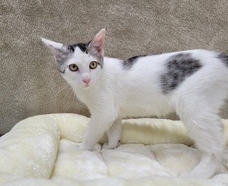 元気いっぱいな男の子で、遊ぶのが大好きです。 人のことが大好きで抱っこすると喉をゴロゴロ鳴らします。 |