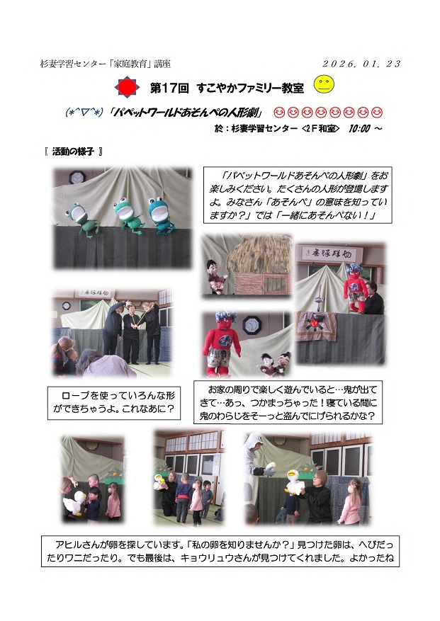 第17回 パペットワールドあそんぺの人形劇(令和8年1月23日)