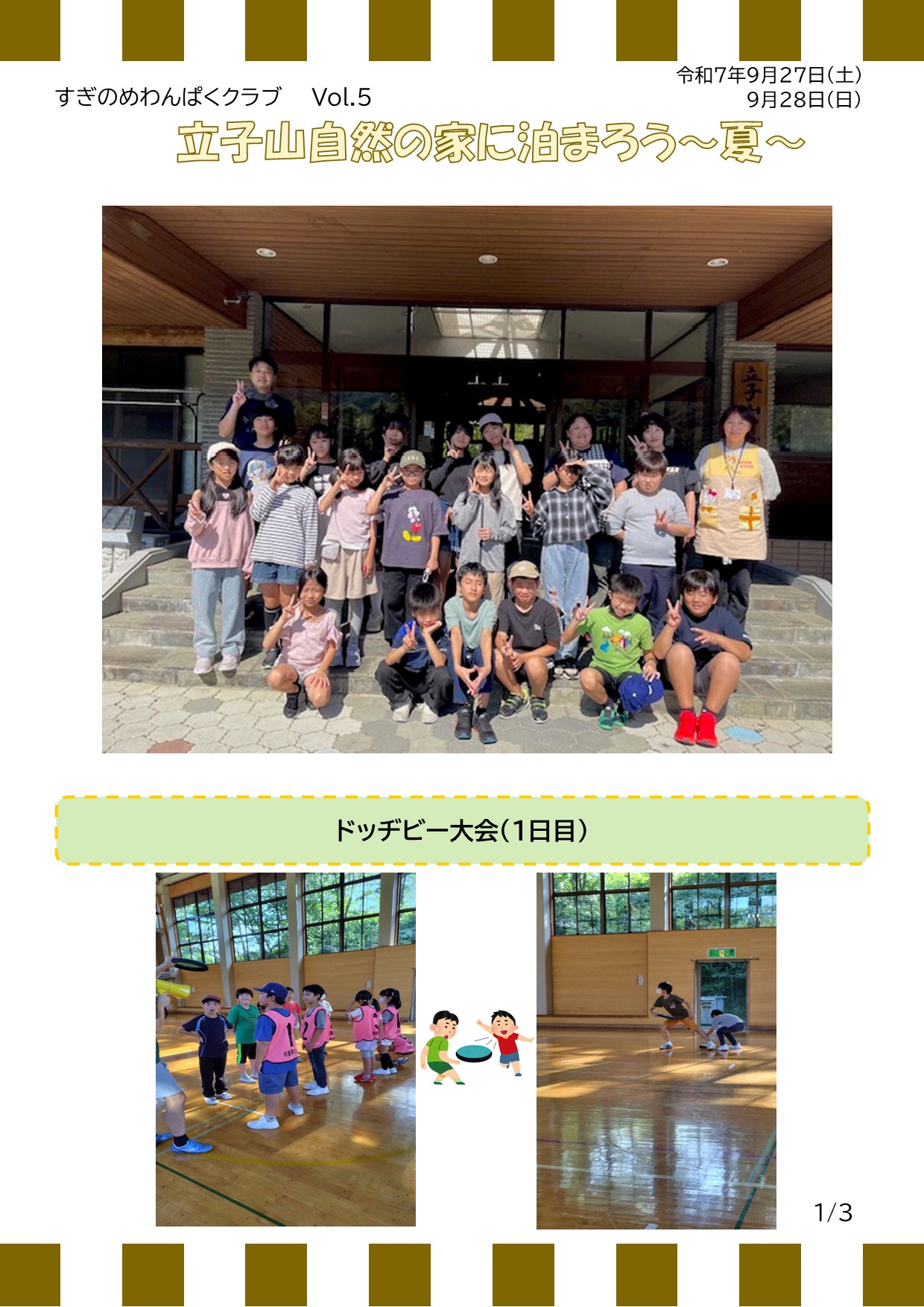 第5回 立子山自然の家泊まろう~夏~(令和7年9月27~28日)