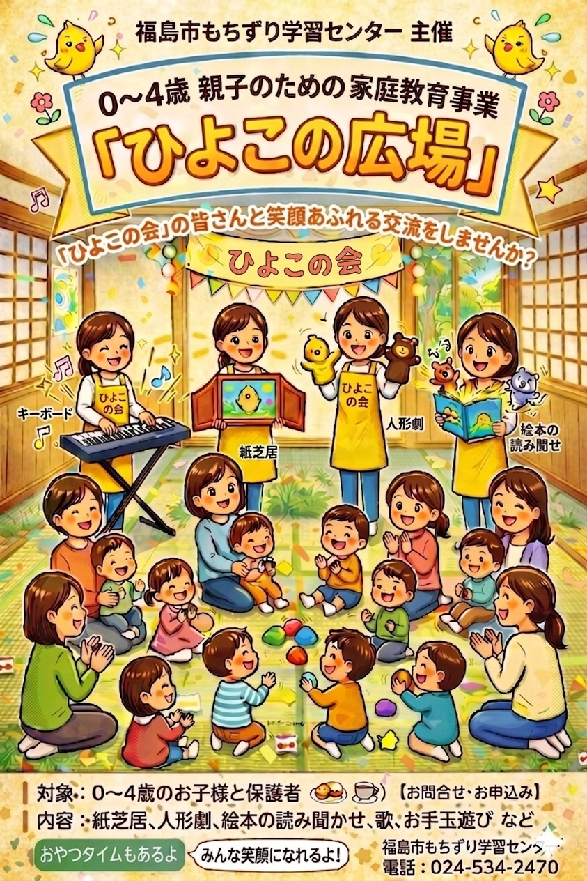 ひよこの広場【後期】は下記のとおり予定しています。 【後期】のお申込みについては9月頃にお知らせします。