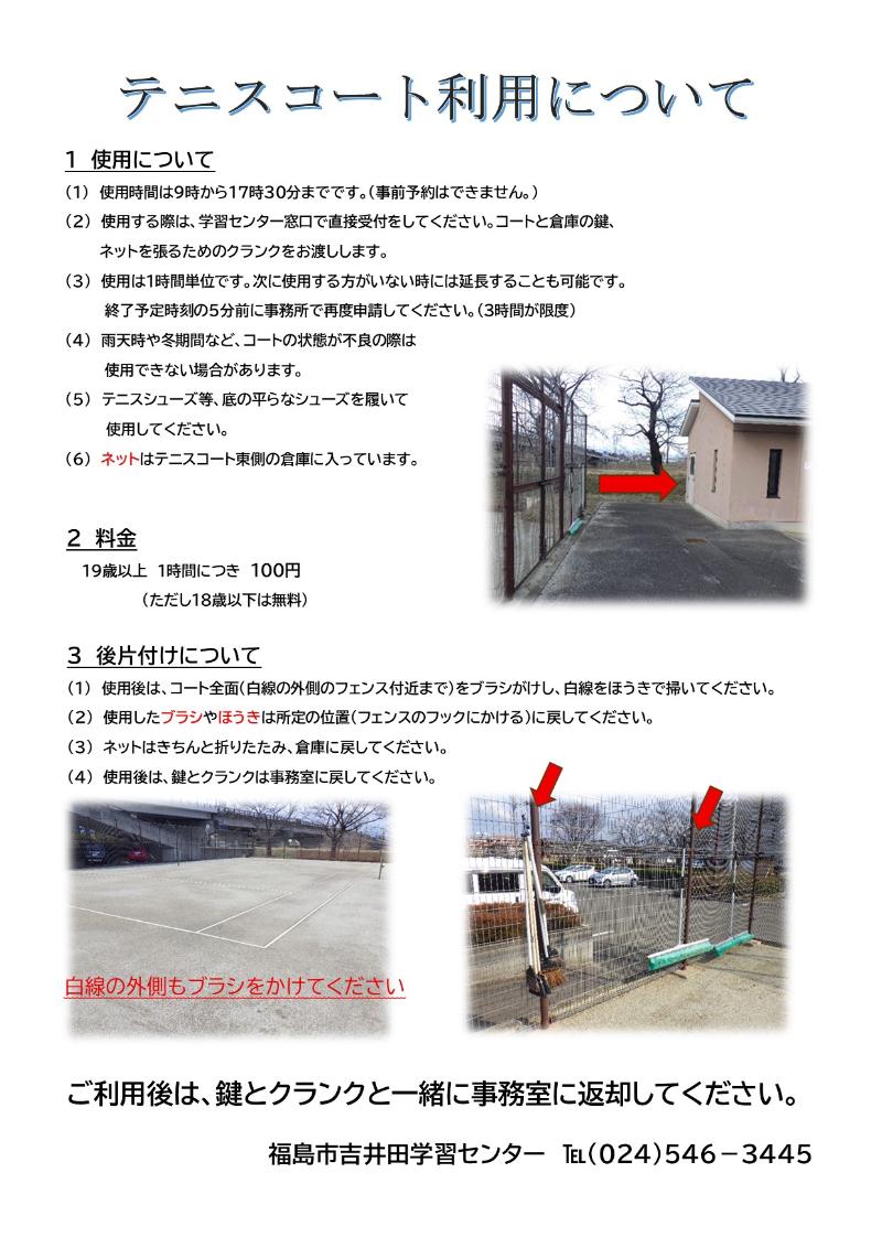 テニスコートについては、吉井田学習センターの開館日に使用が可能です。