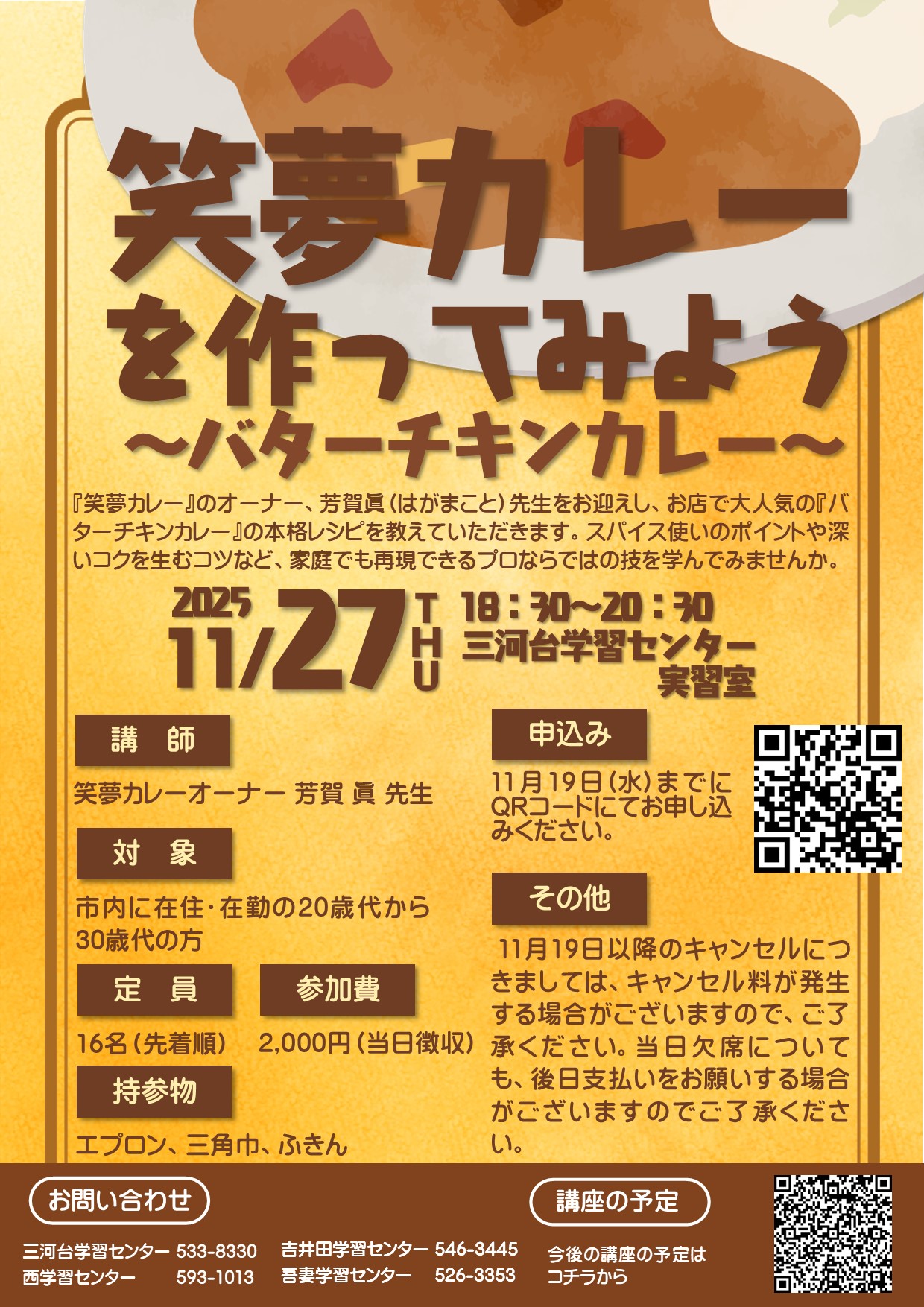 - 講 師:笑夢カレーオーナー 芳賀 眞 先生