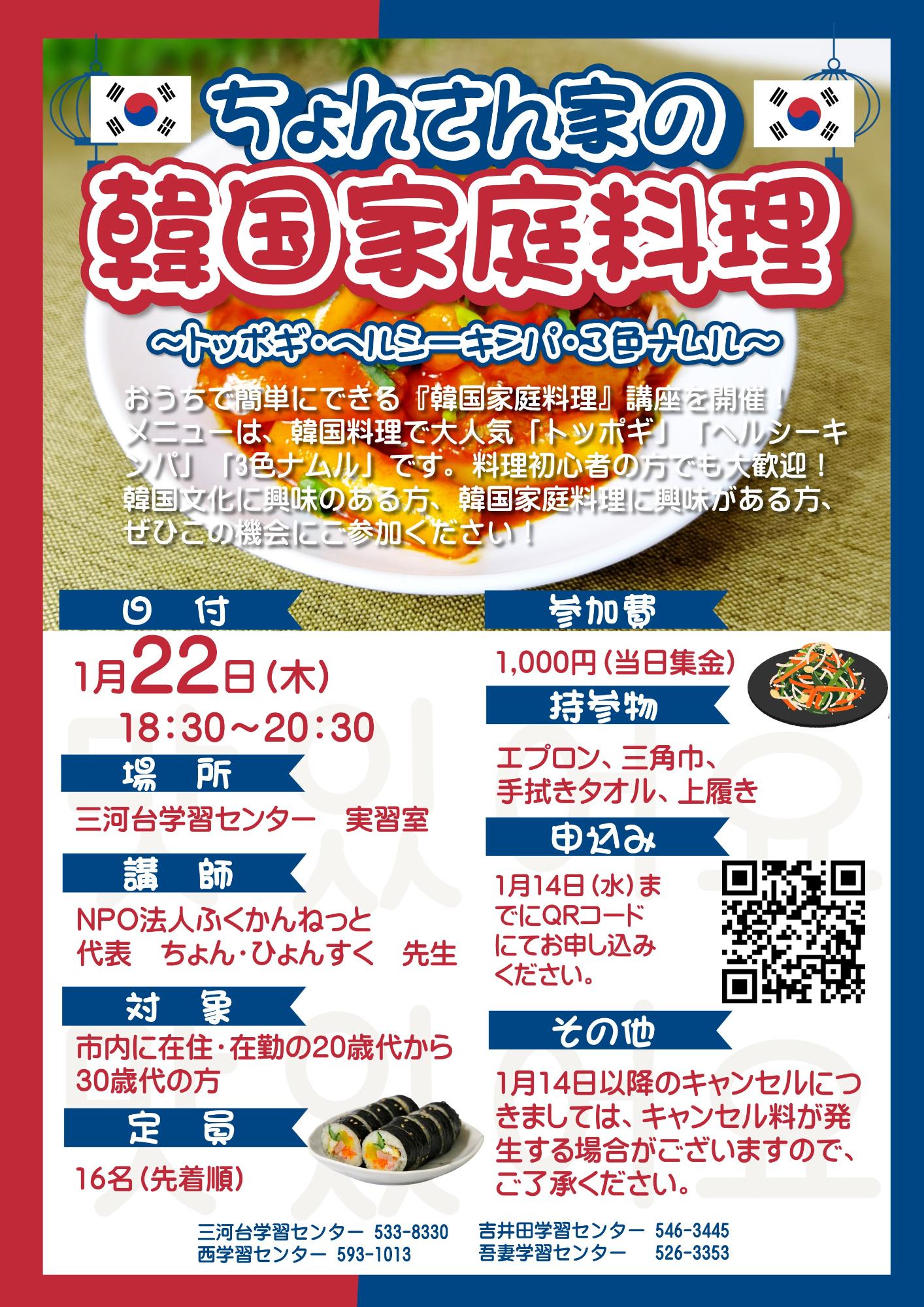 第3回のテーマは、とても身近になった「韓国家庭料理」です。