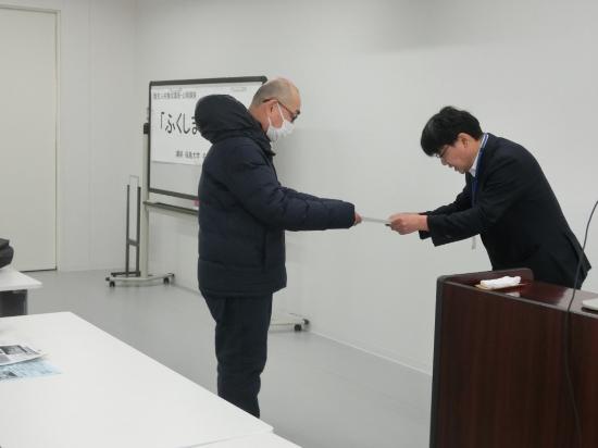 講座の受講者の皆さんに修了証を授与させていただき、今年度の「福島市歴史
