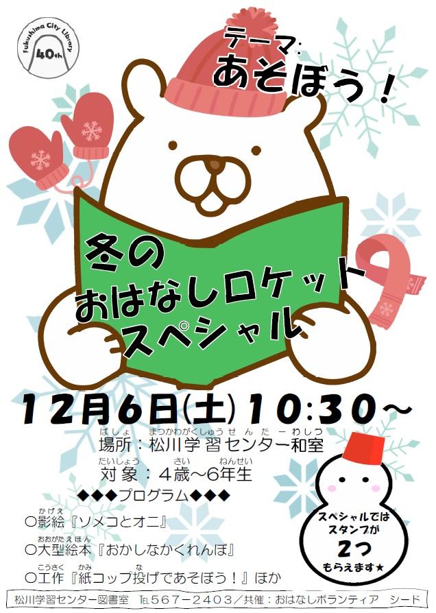12月6日(土曜日)に松川学習センターにて『冬のおはなしロケットスペシャル』を開催します。